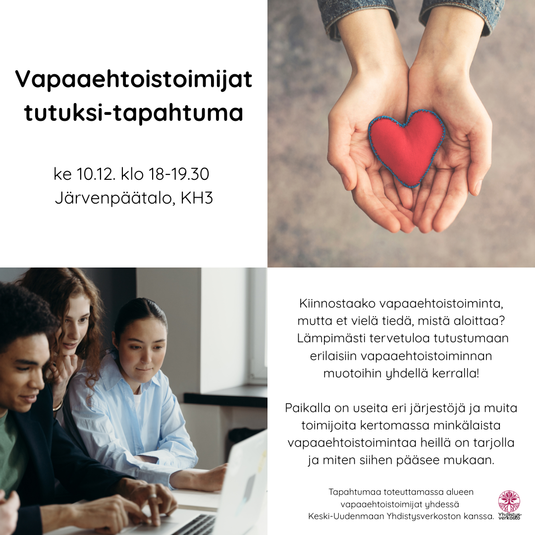 Kiinnostaako vapaaehtoistoiminta, mutta et vielä tiedä, mistä aloittaa? Lämpimästi tervetuloa tutustumaan erilaisiin vapaaehtoistoiminnan muotoihin yhdellä kerralla! Paikalla on useita eri järjestöjä…