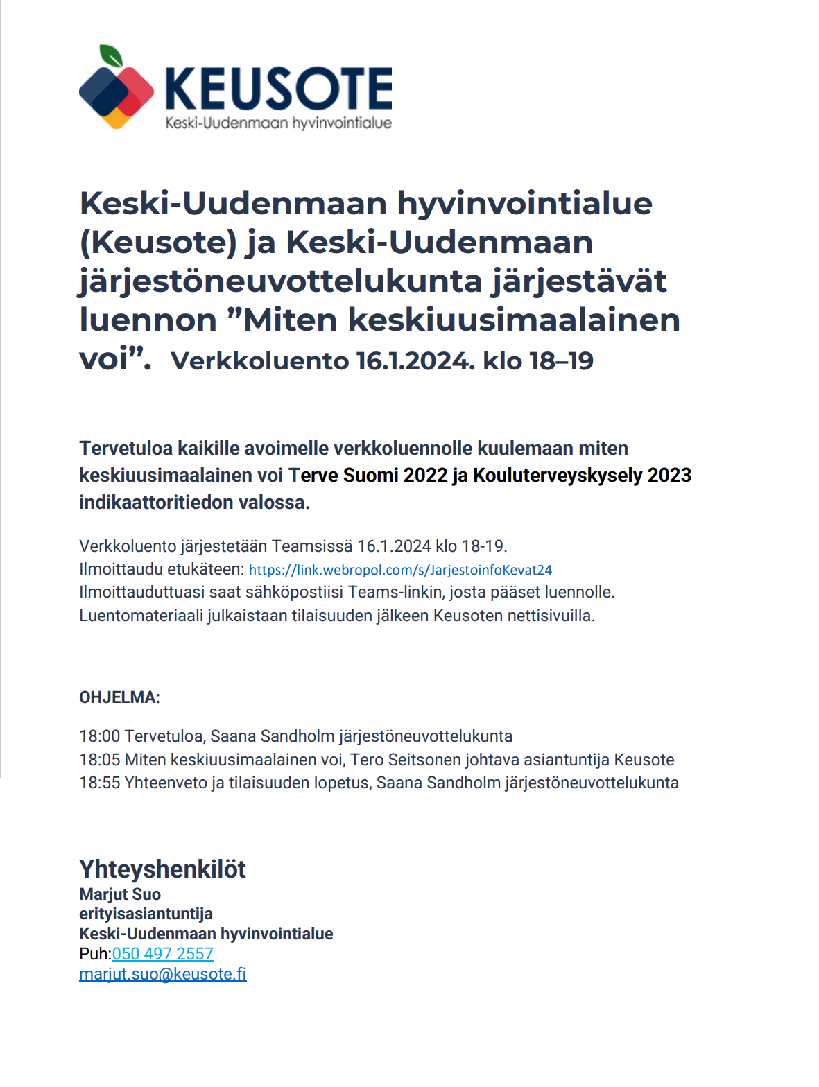 Luentomateriaali julkaistaan tilaisuuden jälkeen Keusoten nettisivuilla.