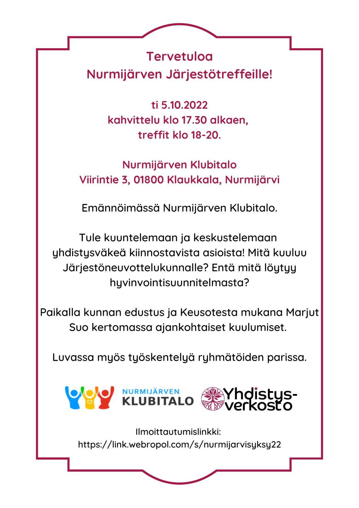 Tule mukaan Nurmijärven Järjestötreffeille.